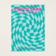 Placa de exibição de joias com um padrão de tabuleiro azul-aqua, torcido e a sua empresa ou nome de design em estilo retrô, fonte rosa-quente de framboesa.