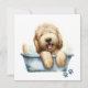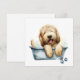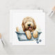 Cachorro bonito ilustra um cachorro feliz e fofo cão Labradoodle em uma banheira. Excelente para amantes de cães.