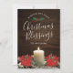 Esta carta TOTALMENTE EDITÁVEL apresenta uma bela vela sobre fundo de madeira com poinsetos e ramos de abeto com mensagem em caligrafia e tipografia de estilo de letreiros manuais que diz, "Desejando-lhe muitas bençãos de Natal. Dentro tem esta mensagem totalmente editável com as poinsettias de add'l e os sotaques de fronteira verde: "Que a alegria e a paz do Natal estejam convosco durante o próximo ano."