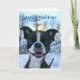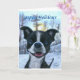 Minha própria pintura de um feliz Boston Terrier se divertindo na neve.
