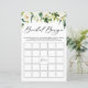Adicione estes jogos de noiva divertidos e brincalhões aos seus chás de panela. Este cartão de jogo de bingo de chá de panela personalizável apresenta ilustrações de aquarela de flores brancas e verde. Personalize adicionando seus próprios detalhes. Este cartão de jogo branco de bingo de chá de panela floral é perfeito para chás de panela e chás de casamento de primavera e verão.