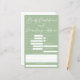 Previsões minimalistas de chá de fraldas verde-sábio e cartão de parentalidade com tipografia branca-chic. Um cartão bonito para os convidados do seu chá de fraldas deixarem a data de nascimento, comprimento, peso, cabelo e previsão da cor dos olhos, juntamente com conselhos dos pais para a mãe e o pai. Que traços espera que o novo bebê herde da mãe e do pai? Passe com suas palavras de sabedoria e estatísticas de natalidade.
