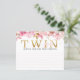 Compartilhe sabedoria e desejos calorosos com este cartão cor-de-rosa e dourado, especialmente concebido para um chá de fraldas para raparigas gêmeas. Apresentando flores de aquarela macia e sotaques elegantes de ouro falso, é uma adição encantadora a qualquer mesa. Convidados podem escrever anotações incríveis para os novos pais tesourarem por anos.