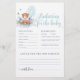 Entra num mundo de encanto adorável com o nosso "Cartão de Chá de fraldas e Predições do Bonito Urso Justo", um design que captura a essência da doçura infantil e a alegria de acolher uma nova vida. No coração deste design, um ursinho de pelúcia, de cor d'água, ganha palco central, segurando três balões azuis atrás de suas costas com um ar de sigilo lúdico. É uma cena carinhosa que encarna a alegria e a maravilha de acolher um bebê precioso no mundo. Por baixo das patas do urso, uma cama de delicadas flores azuis desdobra-se como um prado tranquilo. Cada floração é um testemunho da beleza da natureza e do amor gentil e nutritivo que rodeia a chegada iminente de um bebê precioso. A paleta de cores é uma mistura suave de blues macios e castanhos-de-terra, criando uma atmosfera de serenidade e tranquilidade. Estas matizes deram palco para uma celebração cheia de amor e promessa de novos começos. Promete um encontro cheio de risos, conversas sinceras, e a alegre antecipação de um precioso pequeno. Itens correspondentes disponíveis.