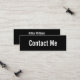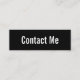 Este mini cartão de visita preto diz "contacte-me" na frente da cartão de visita. A parte traseira tem quatro linhas de texto de exibição para seu nome e informações de contato, como seu número de telefone, endereço de email e/ou identificador de mídia social. Todo o texto pode ser editado ou excluído.