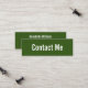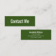 Este mini cartão de visita verde escuro diz "contacte-me" na frente da cartão de visita. A parte traseira tem quatro linhas de texto branco para seu nome e informações de contato, como o número de telefone, endereço de e-mail e/ou identificador de mídia social. Todo o texto pode ser editado ou excluído.