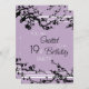 19º cartão de convite de aniversário em padrão floral roxo e preto elegante, delicado e na moda com design de árvore florida. Personalizável com os detalhes do seu participante.