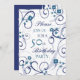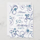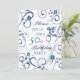 50º cartão de convite de aniversário com um padrão floral branco e azul elegante, delicado e na moda com espirais divertidas. Personalizável com os detalhes do seu participante.