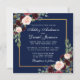 Placa de Convite de casamento Dourada Floral Blue