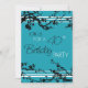 Cartão de convite de festas aniversário de 40 anos com turquesa elegante e padrão floral preto, delicado e na moda com design de árvore florida. Personalizável com os detalhes do seu participante.
