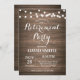 Placa de Convite de festas de aposentadoria russa com luzes de cordas de fundo de madeira. Para mais personalização, clique no botão "Personalizar" e use nossa ferramenta de design para modificar este modelo.