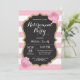 Placa De Convite de festas De Baixa Floral. A Festa de Aposentadoria das Mulheres Convidam. Rosas Rosa. Dourada Glitter. Listras brancas e rosa.