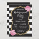 Placa De Convite de festas De Baixa Floral. A Festa de Aposentadoria das Mulheres Convidam. Rosas Rosa. Dourada Glitter. Black and White Stripes.
