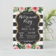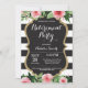 Placa De Convite de festas De Baixa Floral. A Festa de Aposentadoria das Mulheres Convidam. Flores Florais De Cor D'Água Rosa. Dourada Glitter. Black and White Stripes. Para mais personalização, clique no botão "Personalizar" e use a ferramenta design para modificar este modelo.