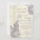Cartão de convite de festas do aniversário de 50 anos de casamento em bege elegante e padrão floral roxo, delicado e formal. Personalizável com os detalhes do seu partido.