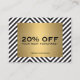 Coordena-se com o Modelo de cartão de negócios de logotipo de nome Dourado padrão preto-e-branco retrorreflector até 1201AM. A caixa de ouro metálica falsa desenhar atenção à sua promoção de desconto. Personalize os campos com seu próprio texto e informações. Estes cartões de cupão de desconto são excelente de salões, boutiques, cabeleireiros, compres de presentes e muito mais. © 1201AM CREATIVE