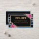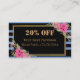 Listras modernas elegantes, pretas e pastéis e azuis poeirentas com borda de ouro flores agudas cor-de-água rosa e cartão de visita de desconto do código QR no fundo azul poeirento. Você pode mudar facilmente todos os detalhes, fontes, cor, tamanho e cor de fundo, frente e verso de ambos os lados. Substitua o seu próprio código QR no seu site na conta de mídia social.