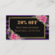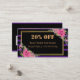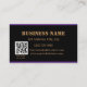 Listras pretas e roxas/violetas elegantes modernas, pretas/roxas, com borda de ouro, flores cor-de-rosa e cor-de-água fofinha e cartão de visita de desconto do código QR no fundo roxo/violeta. Você pode mudar facilmente todos os detalhes, fontes, cor, tamanho e cor de fundo, frente e verso de ambos os lados. Substitua o seu próprio código QR no seu site na conta de mídia social.