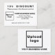 Atrair mais clientes. Convença mais clientes a comprar de seus produtos ou a gostar de seus serviços, oferecendo desconto. Anuncie também sua empresa, promova seu nome de marca ou crie reconhecimento de nome de marca. Personalize este cartão de desconto especificando o desconto em porcentagem que você oferecerá, a data de validade, o upload do logotipo de sua empresa, digitando o nome da sua empresa ou empresa, endereço e número de telefone. O design da placa de desconto é preto e branco simples. Verifique a aparência após carregar o logotipo e digitar textos. Se a aparência lhe agrada, você pode colocar seu pedido agora. Se você precisar redimensionar e mover o logotipo e os textos para o ajustado neste cartão de desconto ou em outras formas e tamanhos que você escolher, mude na ferramenta design. Você também pode fazer outras alterações de acordo com sua preferência na ferramenta design, como alterar a cor do cartão de desconto, a cor da fonte, o estilo da fonte, editar textos, adicionar textos e excluir textos.