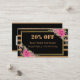 Listras pretas e ouros elegantes modernas, pretas e elegantes, com flores cor-de-água rosa na borda do ouro e cartão de visita de desconto do código QR no fundo do ouro. Você pode mudar facilmente todos os detalhes, fontes, cor, tamanho e cor de fundo, frente e verso de ambos os lados. Substitua o seu próprio código QR no seu site na conta de mídia social.