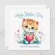 Este doce e bonito cartão de Dia de as mães é o design perfeito para sua mãe no dia especial. Ele apresenta um gatinho agudo, espantoso, de cor d'água, segurando um coração vermelho cercado de flores e o texto vibrante da tipografia "Happy Dia de as mães". É bonito, doce, elegante e único. Personalize sua mensagem sentida no verso e deixe a mãe saber o quanto você se importa.