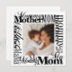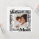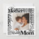Um cartão de saudação de Dia de as mães de tipografia na moda moderna com todas as formas de dizer Mãe, Mamãe, Mãe, Mãe numa colagem de palavras em torno de sua foto personalizada em várias fontes modernas de caligrafia. Uma mensagem digitada no verso deixa espaço para uma mensagem manuscrita. Perfeito para enquadrar! Parte de uma coleção. ©Marisu Valencia