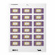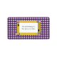 Um rótulo com ilustração de quatro lápis amarelos que formam um retângulo no centro. O fundo é gingham roxo. Personalize com seu nome.