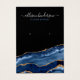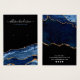 Uma placa de exibição de brinco de joias que se destaca na multidão, com uma fileira de marcadores de orifícios que você pode duplicar, mover-se ou apagar. Projetado com um fundo preto moderno e falso brilho dourado e padrão geodo de agata de mármore azul. O nome está no estilo de tipografia do estilo caligrafia elegante com letra de mão e todo texto é personalizável. Os ícones de mídia social podem ser facilmente removidos clicando na opção 'personalizar mais'.
