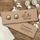 Suporte para exibição de na moda com tipografia de script e coração com texto personalizado. Você pode adicionar seu identificador social Instagram e seu endereço na parte traseira da placa. Essa simples placa de exibição de brinco de papel kraft parece elegante e fácil de personalizar.
