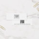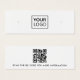 Placa de exibição de mini produto de brinco branco com modelo de logotipo personalizado centralizado e código QR na parte traseira. As guias de brinco podem ser ajustadas adicionando e removendo espaços no campo modelo e movendo todo o elemento na ferramenta design.