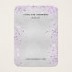 Um cartão para seu brinco ou joias feitos à mão. Um clássico plano de fundo com aspecto de prata, texto preto. Decorado com pó de brilho púrpura e falso. Personalize e adicione seu nome e informações de contato na frente. Com modelos recortadas: adicione sua foto de perfil no verso e use a oportunidade de contar aos seus clientes a história sobre sua marca. Excluir se não desejar.
