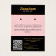 A placa de exibição de joias moderna do Dangle tem uma série de variações a escolher, rosa, azul, bege e e branco. A faixa superior preta, frente e verso, mostra o nome da marca, o site na parte inferior da faixa preta frontal enquanto na parte traseira estão o local de negócios, o contato, a alça social e o código QR; o fundo rosa frontal médio destaca duas ovais para certos tipos de brincos, como o perigo, a queda ou quaisquer brincos longos; e no fundo, o mesmo fundo cor-de-rosa na parte frontal é a descrição do produto e a joalharia.