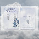 Um design abstrato sonhador com nuvens de pasta macia e folhas botânicas de cor aquosa em azul-poeirento escuro, adicionando um toque de elegância. Personalize com suas informações de contato no verso. Note que os cartões não vêm com furos ou posições pré-cortados; as marcações são apenas para orientação.