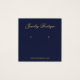 Um simples cartão de exibição de brinco de marinho e ouro: apenas texto de ouro sobre fundo azul de marinho. O nome está escrito em uma caligrafia elegante' embaixo, os locais errantes indicados por dois círculos muito pequenos. O site escrito fecha a fronteira inferior. Há mais informações no verso, na parte inferior. Ele também tem o código QR na parte traseira, à esquerda das informações.