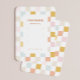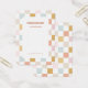 Placa de exibição com um padrão de verificação pastel. Os orifícios de modelo podem ser ajustados ou excluídos, bem como todas as informações de sua empresa. Adicione sua mídia social ou site à parte inferior.