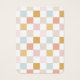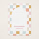 Placa de exibição com um padrão de verificação pastel e uma forma arquivada. Os orifícios de modelo podem ser ajustados ou excluídos, bem como todas as informações de sua empresa. Adicione sua mídia social ou site à parte inferior.