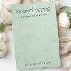 A ouvir o cartão de exibição do produto com a sua marca numa fonte moderna de script numa textura de fundo verde-claro e suave. Texto e logotipo personalizáveis no verso.