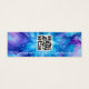 Miniplaca de exibição azul e roxa com mini produto com modelo de logotipo personalizado centralizado e código QR no verso. As guias de brinco podem ser ajustadas adicionando e removendo espaços no campo modelo e movendo todo o elemento na ferramenta design.