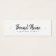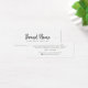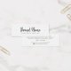 Cartão de exibição branco ou personalizado de mini produto com ícones de mídia social e seu nome de marca em uma fonte elegante de script de caligrafia. As guias de brinco podem ser ajustadas adicionando e removendo espaços no campo modelo e movendo todo o elemento na ferramenta design. Design elegante, moderno, mínimo