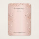 Um cartão para seu brinco ou joias feitos à mão. Um rosa dourado feminino não tem um fundo metálico, texto preto. Personalize e adicione seu nome e informações de contato na frente. Decorado com pó de brilho falso.