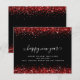 Cartão de Feliz ano novo Preto com Brilhante Vermelho Orçamentário. Um alternativo de 4,5 pol x 5,6 pol com preço orçamentário, em um STOCK CARD SEMI-GLOSS de 110 lb, que é similar em espessura a um cartão postal. Os envelopes são um extra opcional e são ligeiramente maiores que o tamanho da placa. Personalize facilmente o texto para seus detalhes.