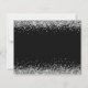 Placa de Feliz ano novo Preta Glitter de Prata Orçamental. Um alternativo de 4,5 pol x 5,6 pol com preço orçamentário, em um STOCK CARD SEMI-GLOSS de 110 lb, que é similar em espessura a um cartão postal. Os envelopes são um extra opcional e são ligeiramente maiores que o tamanho da placa. Personalize facilmente o texto para seus detalhes.