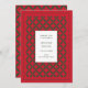 Partilhe desejos festivos com este bonito cartão de férias vermelho e verde. Apresentando um elegante padrão moderno de meio século com formas geométricas ousadas, sotaques florais, estrelas de abstrato, estilo de vintage funky e tipografia clássica, este design único traz o charme do eterno para as saudações de inverno.