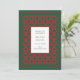 Partilhe desejos festivos com este bonito cartão de férias verde e vermelho. Apresentando um elegante padrão moderno de meio século com formas geométricas ousadas, sotaques florais, estrelas de abstrato, estilo de vintage funky e tipografia clássica, este design único traz o charme do eterno para as saudações de inverno.