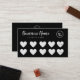 Mostre apreciação em estilo com este cartão de fidelidade preto e cinza, com seu logotipo personalizado, um pequeno ícone cardíaco e uma elegante caligrafia de script de assinatura. Perfeito para salões de beleza, maquiadores, ou estúdios de cabelos e unhas, este cartão punch minimalista é ideal para a marca de recompensa de promocional e para construir uma lealdade de cliente duradoura com um toque bonito e romântico.