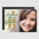 Anuncie sua graduação em estilo com este elegante cartão magnético de anúncio personalizado de fotos. Este design tem sua foto à direita e à esquerda é uma camada com um design de tipografia com as palavras Classe de Formando de 20XX com seu nome e escola para personalizar em ouro e roteiro preto acentuado por um falso boné de formando de ouro. Desenhada por Susan Coffey.