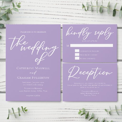 Lovely Lilac Purple White Typography WeddingCriado por Elisha Seybold