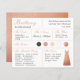 Um cartão de informação da dama de rosa dourada, incluindo informações sobre a data e a localização do casamento, as cores do casamento, a festa noiva, o vestido da dama de honra e uma mensagem de proposta da dama de honra. O nome da madrinha e os títulos são escritos em uma escrita elegante e pitada, semelhante em cor ao ouro rosa. No canto inferior direito, há um (faux) vestido de ouro rosa. No centro, há as cores do casamento em círculos. As cores podem ser alteradas, com exceção do círculo dourado rosa. O dorso também é (faux) ouro rosa.
