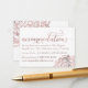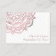 Numa letra festiva e elaborada, a palavra "acomodações" aparece na frente deste cartão moderno. O texto foi embelezado com um falso efeito de folha de ouro-rosa. Abaixo, que são campos de modelo para os detalhes importantes das reservas de hotel dos seus convidados, em cor-de-rosa correspondente. Do outro lado, foi adicionado um modelo para seus nomes e data. Cada lado foi decorado com uma elaborada mandala, também embelezada com o mesmo efeito rosa. O fundo é branco e você pode mudar isso para qualquer cor que você preferir. Todas as camadas foram adicionadas separadamente e foram deixadas desbloqueadas para que você possa personalizar ainda mais seu gosto. Se você quiser mudar o tamanho ou a posição de qualquer uma das palavras ou mandala - especialmente para acomodar o comprimento das palavras em seus detalhes - isso é fácil de fazer quando você clica no link para personalizar ainda mais. Faça deste design! // 56 // Concebida por Melody Watson para Paper Muserie.