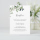 Este cartão de recepção de casamento de oliveira moderno é perfeito para um casamento de boho. O design rústico, porém elegante, apresenta folhas botânicas de cor aquática simples e azeitonas pretas num pequeno galho com um toque mediterrânico clássico. Personalize este cartão de recinto detalhado com as informações de recepção e inclua também o endereço do seu site de casamento!